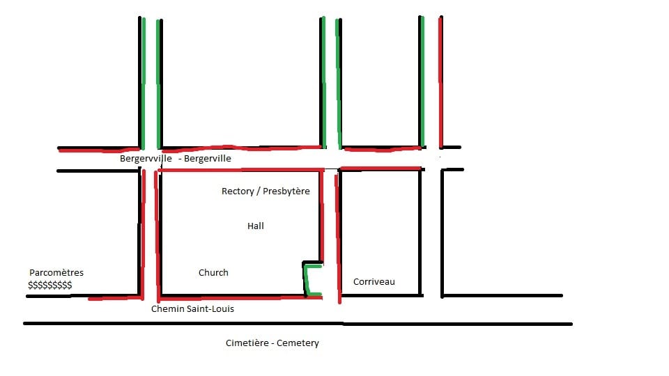 If you are joining us for the 3:00pm Good Friday service at St. Michael's, Sillery, please note that parking directly around the church on chemin Saint-Louis is prohibited. Permitted parking (2 hours) is available on nearby streets. Please refer to the map below.
